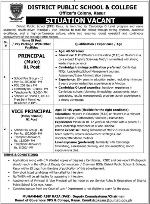 District Public School & College Kasur Jobs 2026 announce the Contract career opportunities for the post of See Below Ad in Punjab, Kasur for the fresh and experienced candidates on Contract basis who have Check Advertisement degree. Posted date of this post is 02/03/2026 and the last date is 18/03/2026. if you are eligible for this job apply before due date.
