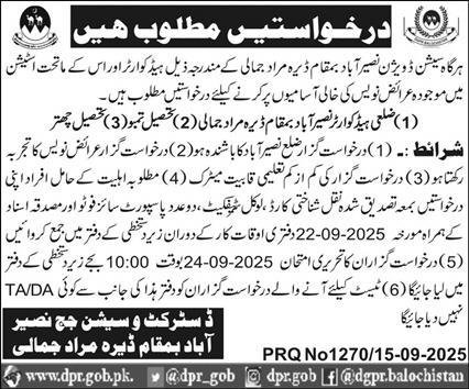 District & Session Court Dera Murad Jamali Jobs 2025 announce the Contract career opportunities for the post of See Below Ad in Balochistan, Dera Murad Jamali for the fresh and experienced candidates on Contract basis who have Check Advertisement degree. Posted date of this post is 16/09/2025 and the last date is 22/09/2025. if you are eligible for this job apply before due date.