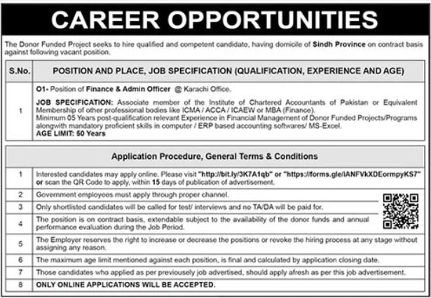 Donor Funded Project Karachi Jobs 2025 announce the Contract career opportunities for the post of See Below Ad in Sindh, Karachi for the fresh and experienced candidates on Contract basis who have Check Advertisement degree. Posted date of this post is 03/10/2025 and the last date is 17/10/2025. if you are eligible for this job apply before due date.