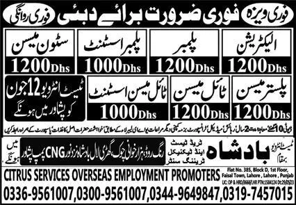 Electrician And Plaster Mason Jobs In Dubai 2023 announce the Contract career opportunities for the post of See Below Ad in Dubai for the fresh and experienced candidates on Contract basis who have Check Advertisement degree. Posted date of this post is 07/06/2023 and the last date is 12/06/2023. if you are eligible for this job apply before due date.