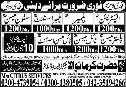 Electrician & Plumber Assistant Jobs 2023 In Dubai announce the Contract career opportunities for the post of See Below Ad in Dubai for the fresh and experienced candidates on Contract basis who have Check Advertisement degree. Posted date of this post is 06/06/2023 and the last date is 10/06/2023. if you are eligible for this job apply before due date.