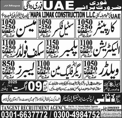 Electrician & Scaffolder Jobs 2025 In UAE announce the Contract career opportunities for the post of See Below Ad in United Arab Emirates for the fresh and experienced candidates on Contract basis who have Check Advertisement degree. Posted date of this post is 07/08/2025 and the last date is 09/08/2025. if you are eligible for this job apply before due date.