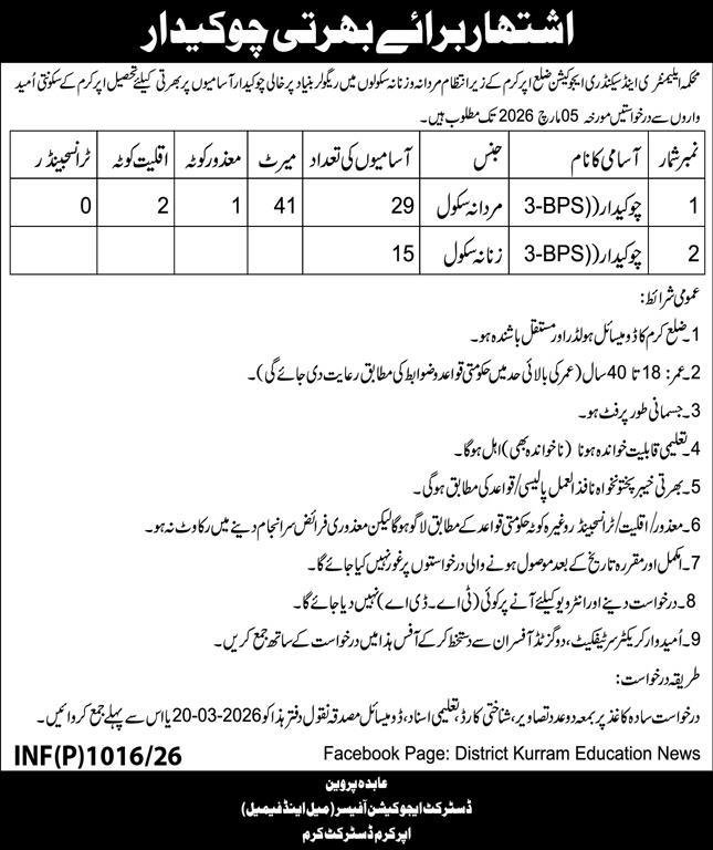 Elementary & Secondary Education ESED Kurram Jobs 2026 announce the Contract career opportunities for the post of See Below Ad in Khyber Pakhtunkhwa, Kurram for the fresh and experienced candidates on Contract basis who have Check Advertisement degree. Posted date of this post is 07/03/2026 and the last date is 20/03/2026. if you are eligible for this job apply before due date.