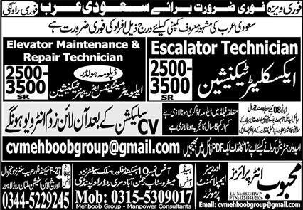 Elevator Maintenance & Repair Technician Jobs 2026 announce the Contract career opportunities for the post of See Below Ad in Saudi Arabia for the fresh and experienced candidates on Contract basis who have Check Advertisement degree. Posted date of this post is 22/01/2026 and the last date is 29/01/2026. if you are eligible for this job apply before due date.