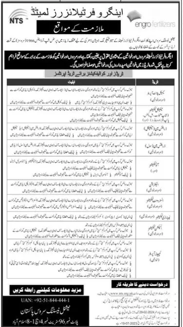 - Read complete ad online via NTS to know how to apply on latest Engro Fertilizers Limited job opportunities.