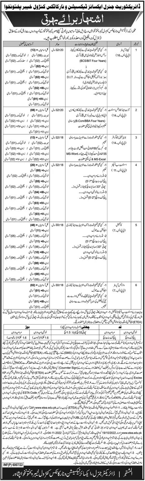 Excise Taxation & Narcotics Control KPK Jobs 2022
