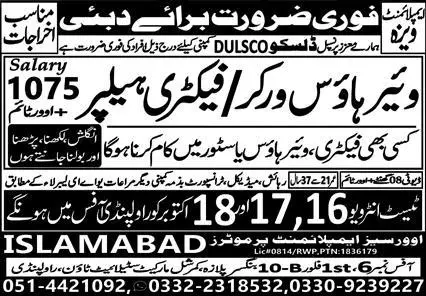 Factory Helper And Warehouse Worker Jobs 2023 In Dubai announce the Contract career opportunities for the post of See Below Ad in Dubai for the fresh and experienced candidates on Contract basis who have Check Advertisement degree. Posted date of this post is 15/10/2023 and the last date is 18/10/2023. if you are eligible for this job apply before due date.