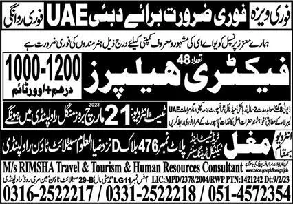 Factory helper Jobs in Dubai 2023 announce the Contract career opportunities for the post of See Below Ad in Abu Dhabi for the fresh and experienced candidates on Contract basis who have Check Advertisement degree. Posted date of this post is 19/03/2023 and the last date is 21/03/2023. if you are eligible for this job apply before due date.