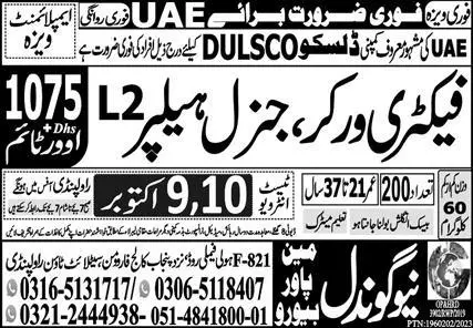 Factory Worker, General Laborer, Helper Jobs in Dubai 2023 announce the Contract career opportunities for the post of See Below Ad in Dubai for the fresh and experienced candidates on Contract basis who have Check Advertisement degree. Posted date of this post is 09/10/2023 and the last date is 10/10/2023. if you are eligible for this job apply before due date.