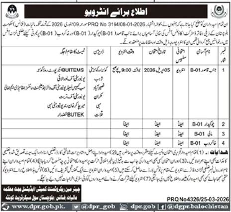 Finance Department Quetta Jobs Interview 2026 announce the Contract career opportunities for the post of See Below Ad in Balochistan, Quetta for the fresh and experienced candidates on Contract basis who have Check Advertisement degree. Posted date of this post is 26/03/2026 and the last date is 10/04/2026. if you are eligible for this job apply before due date.