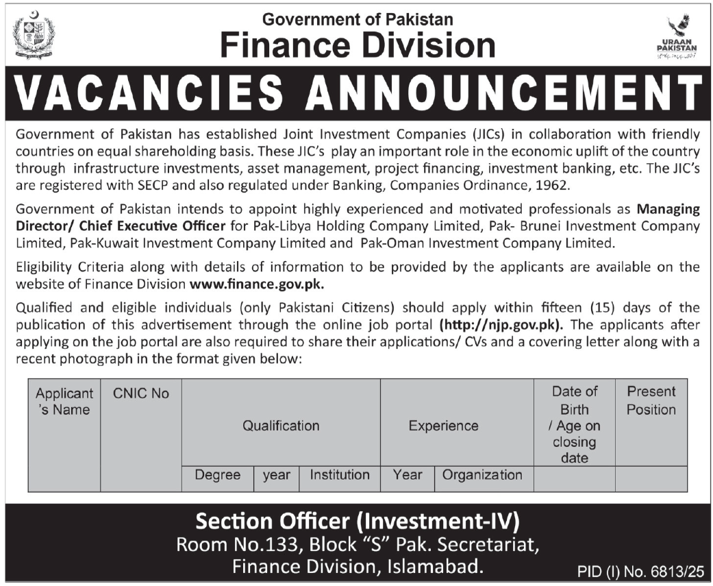 Finance Division Islamabad Jobs 2026 For Managing Director announce the Contract career opportunities for the post of See Below Ad in Federal, Islamabad for the fresh and experienced candidates on Contract basis who have Check Advertisement degree. Posted date of this post is 20/02/2026 and the last date is 07/03/2026. if you are eligible for this job apply before due date.