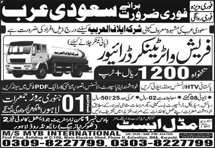 Fresh Water Tanker Jobs In Saudia Arabia 2026 announce the Contract career opportunities for the post of See Below Ad in Saudi Arabia for the fresh and experienced candidates on Contract basis who have Check Advertisement degree. Posted date of this post is 28/12/2025 and the last date is 01/01/2026. if you are eligible for this job apply before due date.