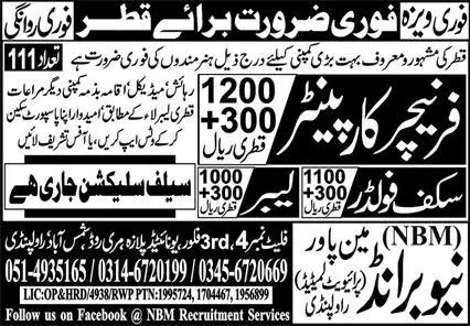 Furniture Carpenter & Labor Jobs 2023 In Qatar announce the Contract career opportunities for the post of See Below Ad in Qatar for the fresh and experienced candidates on Contract basis who have Check Advertisement degree. Posted date of this post is 12/10/2023 and the last date is 19/10/2023. if you are eligible for this job apply before due date.