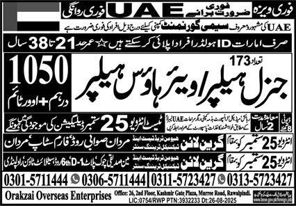 General Helper And Where House Helper Jobs in Uae 2025 announce the Contract career opportunities for the post of See Below Ad in United Arab Emirates for the fresh and experienced candidates on Contract basis who have Check Advertisement degree. Posted date of this post is 23/09/2025 and the last date is 25/09/2025. if you are eligible for this job apply before due date.