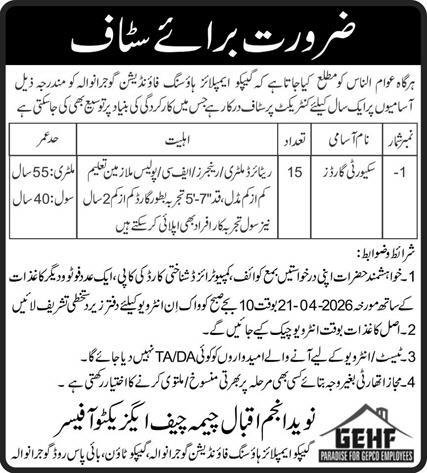 GEPCO Employees Housing Foundation Gujranwala Jobs 2026 announce the Contract career opportunities for the post of See Below Ad in Punjab, Gujranwala for the fresh and experienced candidates on Contract basis who have Check Advertisement degree. Posted date of this post is 17/04/2026 and the last date is 21/04/2026. if you are eligible for this job apply before due date.