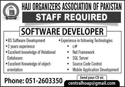 - Hajj Organizers Association of Pakistan HOAP Islamabad, islamabad Islamabad Pakistan invites applications from eligible candidates for the post of software developer as per advertisement of February 22, 2023 published in daily Express Newspaper. Educational qualifications required etc.
