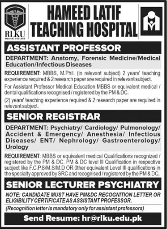 Hameed Latif Hospital Lahore Punjab Jobs 2025 announce the Contract career opportunities for the post of See Below Ad in Punjab, Lahore for the fresh and experienced candidates on Contract basis who have Check Advertisement degree. Posted date of this post is 14/12/2025 and the last date is 29/12/2025. if you are eligible for this job apply before due date.