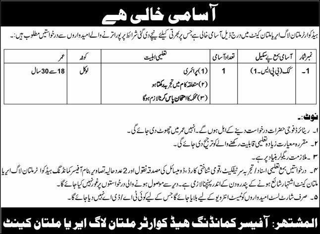 Headquarter Multan Log Area Cantt Jobs 2026 For Cook announce the Contract career opportunities for the post of See Below Ad in Punjab, Multan for the fresh and experienced candidates on Contract basis who have Check Advertisement degree. Posted date of this post is 04/03/2026 and the last date is 18/03/2026. if you are eligible for this job apply before due date.
