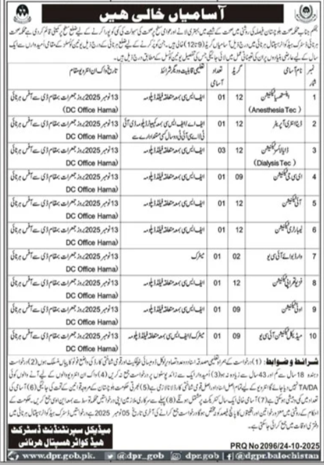 Health Department Harnai Balochistan Jobs 2025 announce the Contract career opportunities for the post of See Below Ad in Balochistan, Harnai for the fresh and experienced candidates on Contract basis who have Check Advertisement degree. Posted date of this post is 25/10/2025 and the last date is 05/11/2025. if you are eligible for this job apply before due date.