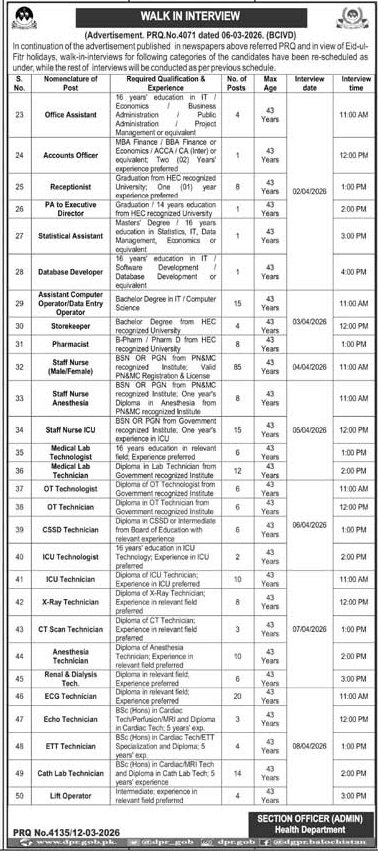 Health Department Quetta Jobs 2026 announce the Contract career opportunities for the post of See Below Ad in Balochistan, Quetta for the fresh and experienced candidates on Contract basis who have Check Advertisement degree. Posted date of this post is 13/03/2026 and the last date is 06/04/2026. if you are eligible for this job apply before due date.