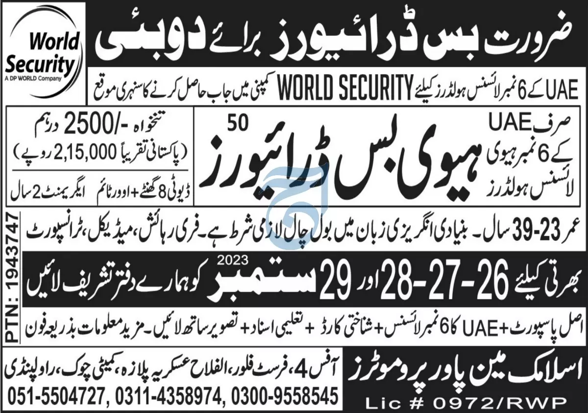 Heavy Bus Driver Jobs In Dubai 2023 announce the Contract career opportunities for the post of See Below Ad in Dubai for the fresh and experienced candidates on Contract basis who have Check Advertisement degree. Posted date of this post is 26/09/2023 and the last date is 29/09/2023. if you are eligible for this job apply before due date.