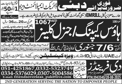 House Keeping And General Keeper Jobs in Dubai 2026 announce the Contract career opportunities for the post of See Below Ad in Dubai for the fresh and experienced candidates on Contract basis who have Check Advertisement degree. Posted date of this post is 05/01/2026 and the last date is 07/01/2026. if you are eligible for this job apply before due date.