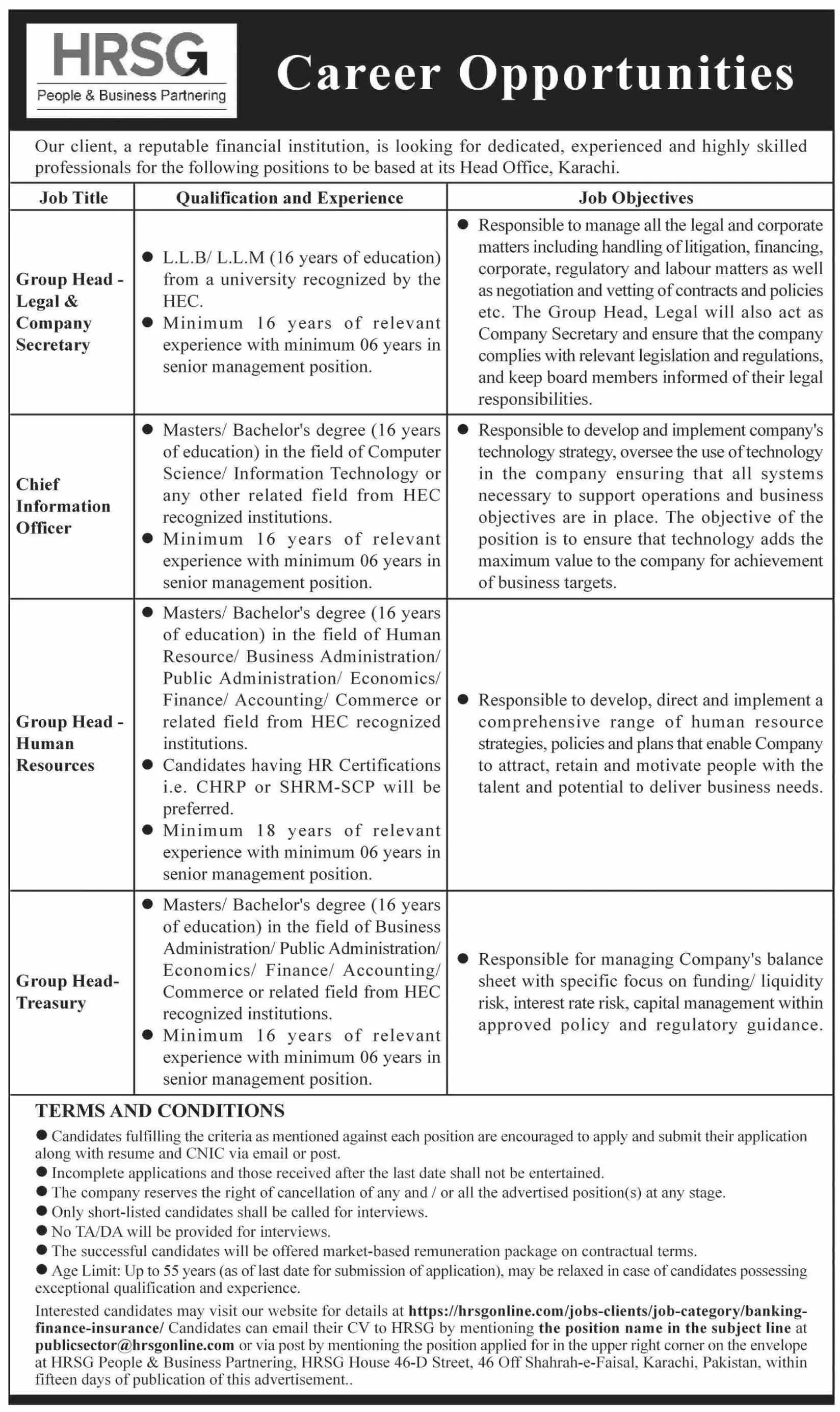 Hrsg Outsourcing Pvt Limited Jobs announce the Contract career opportunities for the post of See Below Ad in Sindh, Karachi for the fresh and experienced candidates on Contract basis who have Check Advertisement degree. Posted date of this post is 29/03/2022 and the last date is 13/03/2022. if you are eligible for this job apply before due date.
