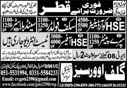 HSE Coordinator and Spray Painter jobs in Qatar 2023 announce the Contract career opportunities for the post of See Below Ad in Qatar for the fresh and experienced candidates on Contract basis who have Check Advertisement degree. Posted date of this post is 21/03/2023 and the last date is 21/04/2023. if you are eligible for this job apply before due date.