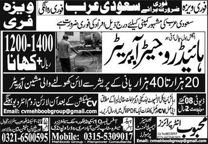 Hydro Jetter Operator Jobs 2026 In Saudi Arabia announce the Contract career opportunities for the post of See Below Ad in Saudi Arabia for the fresh and experienced candidates on Contract basis who have Check Advertisement degree. Posted date of this post is 21/01/2026 and the last date is 28/01/2026. if you are eligible for this job apply before due date.