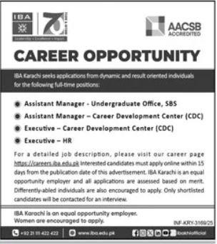 IBA Karachi is an equal opportunity employer. Women are encouraged to apply.