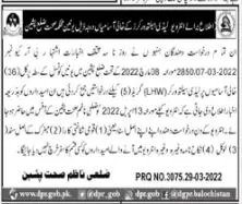 Interview In Health Department Pishin LHV announce the Contract career opportunities for the post of See Below Ad in Balochistan, Pishin for the fresh and experienced candidates on Contract basis who have Check Advertisement degree. Posted date of this post is 30/03/2022 and the last date is 13/04/2022. if you are eligible for this job apply before due date.