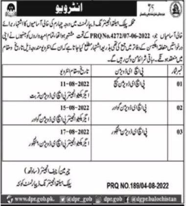 interview in Public Health Engineering Department Quetta announce the Contract career opportunities for the post of See Below Ad in Balochistan, Quetta for the fresh and experienced candidates on Contract basis who have Check Advertisement degree. Posted date of this post is 05/08/2022 and the last date is 17/08/2022. if you are eligible for this job apply before due date.
