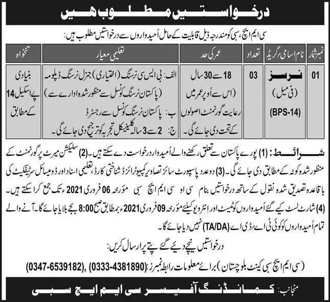 Jobs Combined Military Hospital CMH Sibi