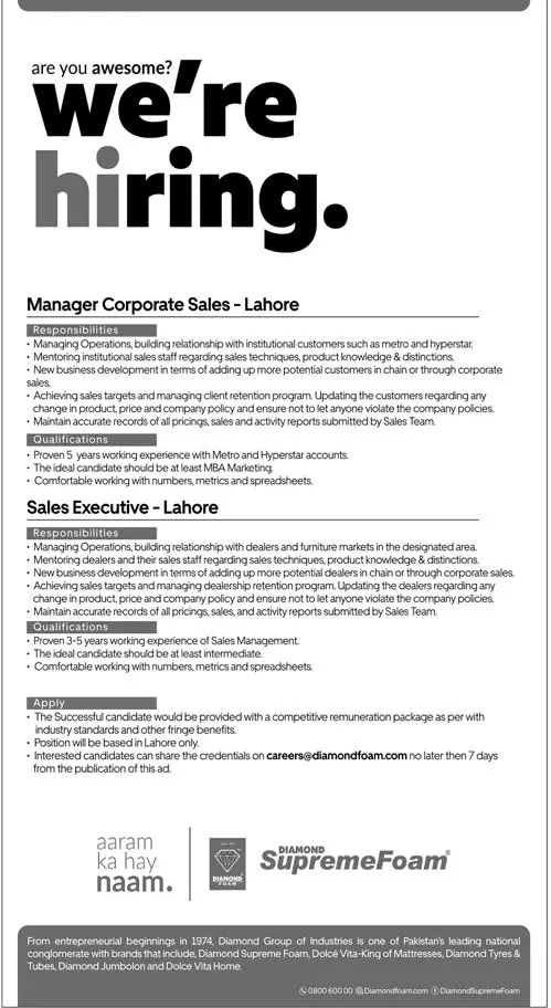 Jobs Diamond Supreme Foam Lahore