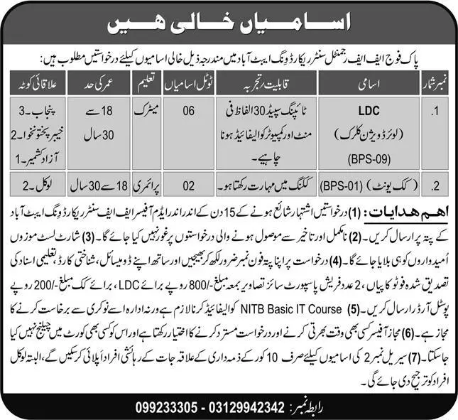 Pak Army Ff Regmintal Center Record Wing Abbottabad Jobs 2021