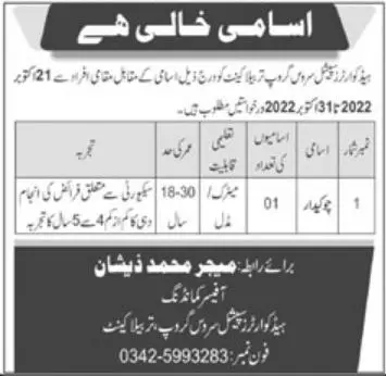 chowkidar Persons with Primary and Middle etc. education can apply.
