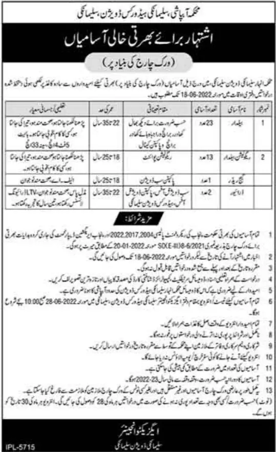 Jobs in irrigation Department okara Punjab announce the Contract career opportunities for the post of See Below Ad in Punjab, Okara for the fresh and experienced candidates on Contract basis who have Check Advertisement degree. Posted date of this post is 04/06/2022 and the last date is 18/06/2022. if you are eligible for this job apply before due date.