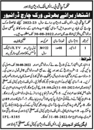 Jobs in Irrigation Department Punjab Lahore announce the Contract career opportunities for the post of See Below Ad in Punjab, Lahore for the fresh and experienced candidates on Contract basis who have Check Advertisement degree. Posted date of this post is 20/08/2022 and the last date is 30/08/2022. if you are eligible for this job apply before due date.