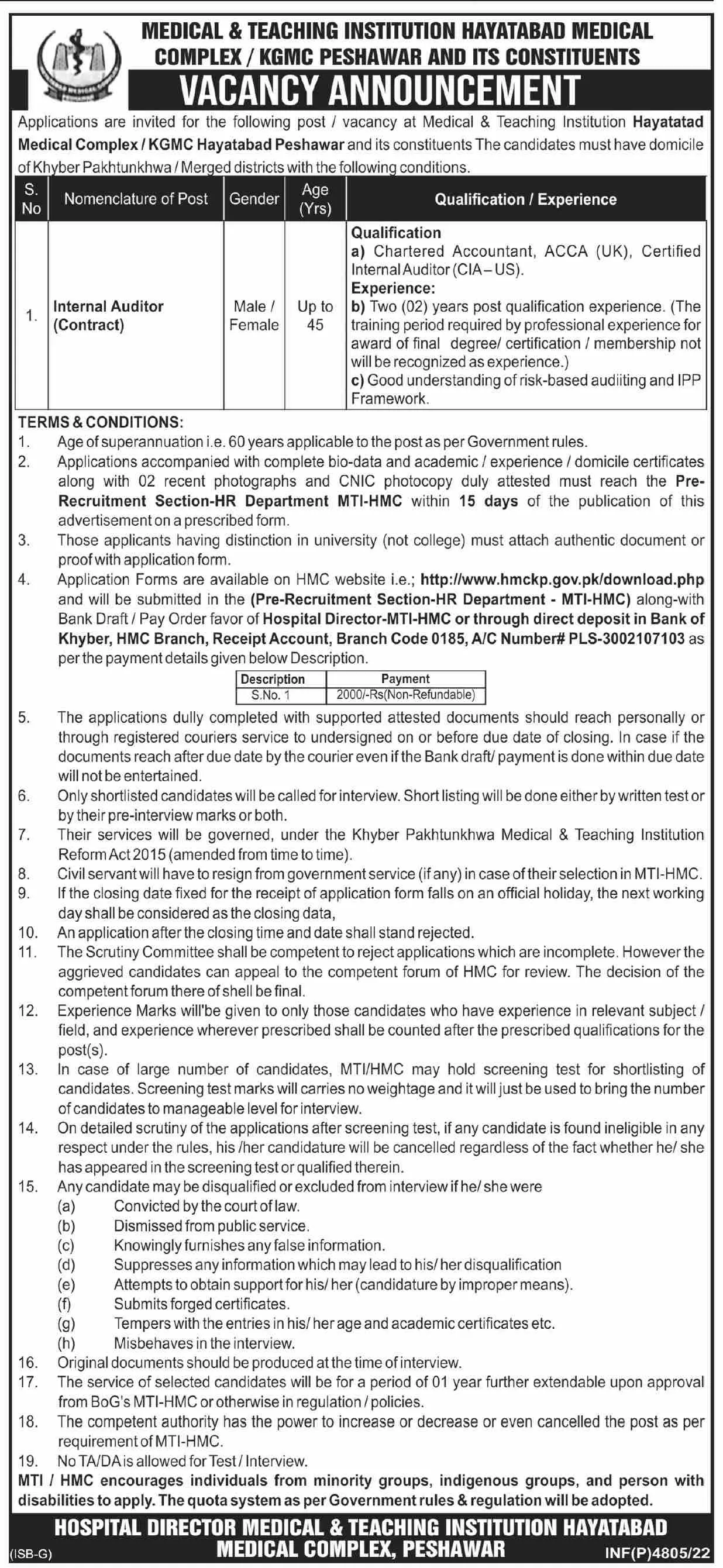 Jobs in Medical Teaching Institution MTI Peshawar announce the Contract career opportunities for the post of See Below Ad in Khyber Pakhtunkhwa, Peshawar for the fresh and experienced candidates on Contract basis who have Check Advertisement degree. Posted date of this post is 20/08/2022 and the last date is 04/09/2022. if you are eligible for this job apply before due date.