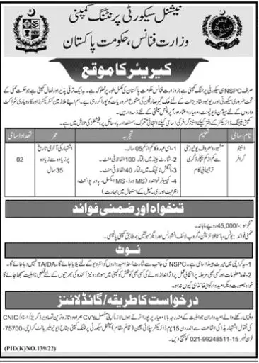 Jobs in National Security Printing Company announce the Contract career opportunities for the post of See Below Ad in Sindh, Karachi for the fresh and experienced candidates on Contract basis who have Check Advertisement degree. Posted date of this post is 24/07/2022 and the last date is 08/08/2022. if you are eligible for this job apply before due date.