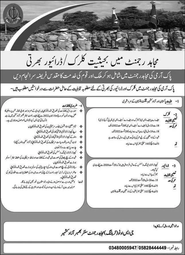 Jobs in Pakistan Army Azad Kashmir announce the Permanent career opportunities for the post of See Below Ad in Azad Jammu Kashmir for the fresh and experienced candidates on Permanent basis who have Check Advertisement degree. Posted date of this post is 29/05/2022 and the last date is 10/06/2022. if you are eligible for this job apply before due date.