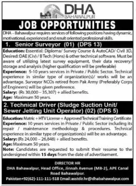 Jobs in Pakistan DHA Bahawalpur Punjab announce the Contract career opportunities for the post of check the advertisement in Punjab,Bahawalpur for the fresh and experienced candidates on Contract basis who have Check Advertisement degree. Posted date of this post is 16/11/2021 and the last date is 30/11/2021. if you are eligible for this job apply before due date.