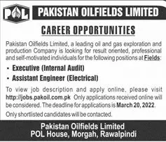 Jobs In Pakistan Oilfields Limited Company announce the Contract career opportunities for the post of See Below Ad in Punjab, Rawalpindi for the fresh and experienced candidates on Contract basis who have Check Advertisement degree. Posted date of this post is 13/03/2022 and the last date is 20/03/2022. if you are eligible for this job apply before due date.