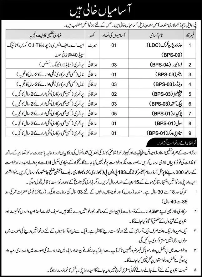 Jobs in Pakistan POL Dapu (Bhulari Sindh) Jamshoro Sindh