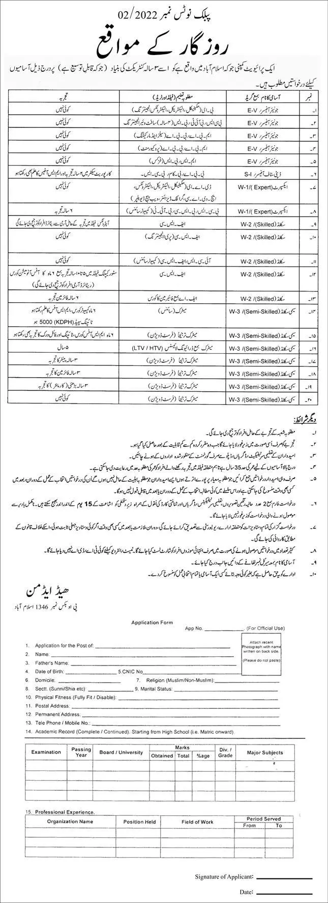 Jobs in Private Company Islamabad announce the Contract career opportunities for the post of See Below Ad in Federal, Islamabad for the fresh and experienced candidates on Contract basis who have Check Advertisement degree. Posted date of this post is 07/08/2022 and the last date is 22/08/2022. if you are eligible for this job apply before due date.