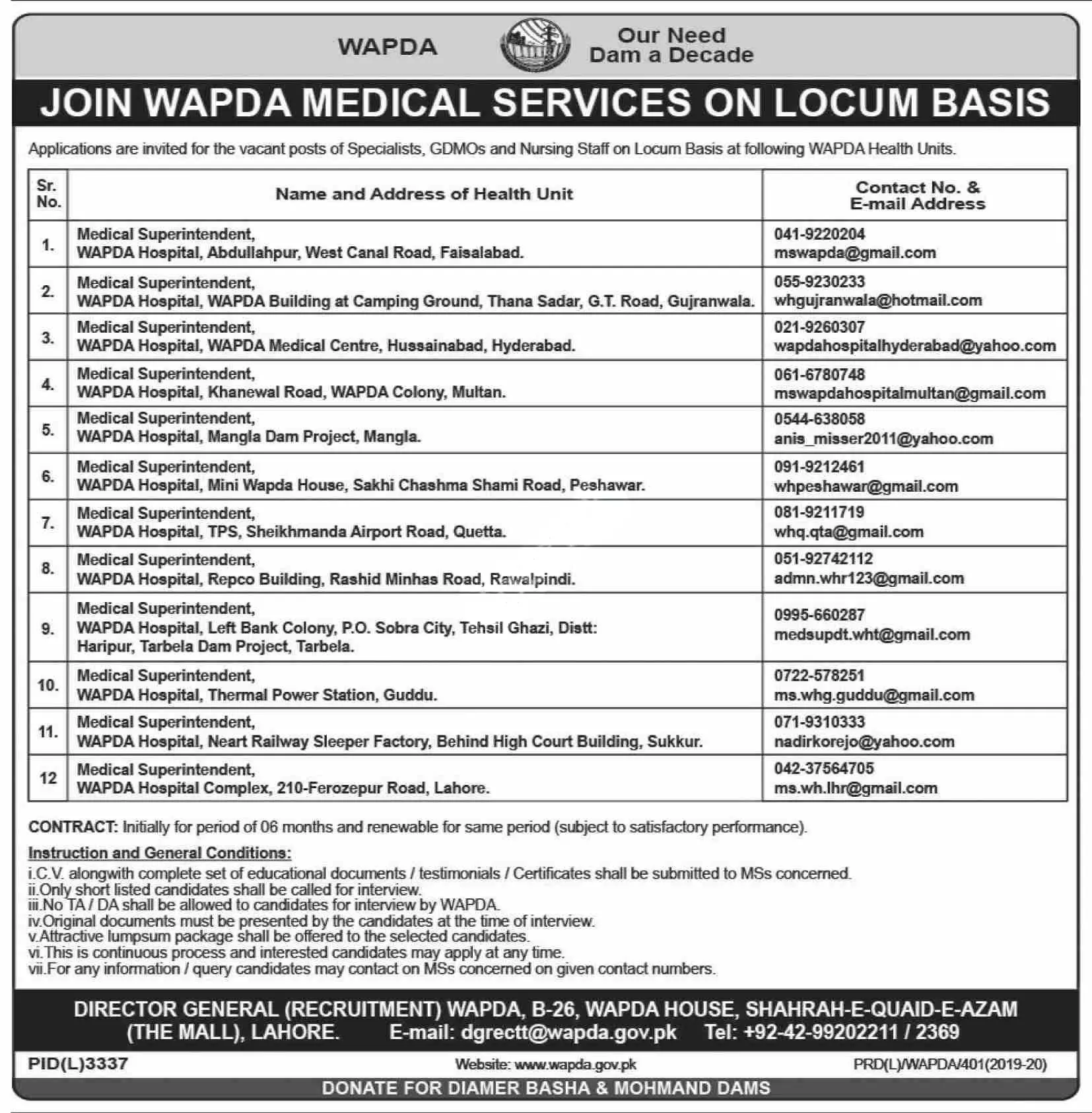 Tags: Jobs in WAPDA Medical, Jobs in WAPDA, WAPDA Jobs,jobs in wapda 2020,jobs in wapda hospital,jobs in wapda town lahore,jobs in wapda lahore 2020,jobs in wapda latest,jobs in wapda lahore,