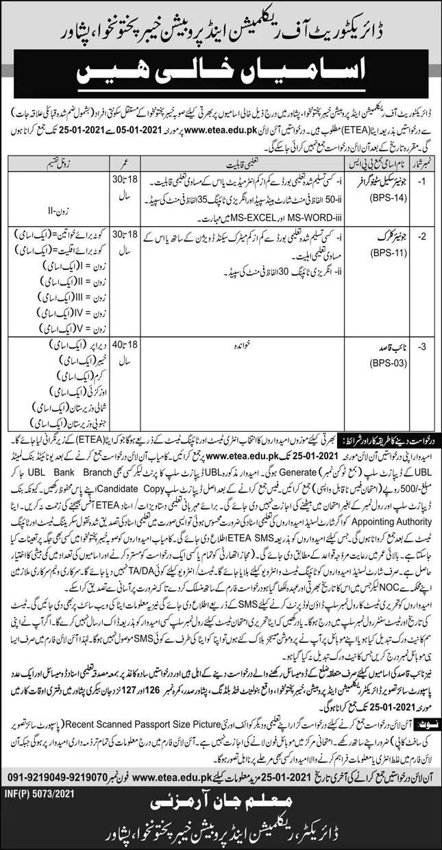 Positions Jobs Reclamation And Probation Home Department Peshawar