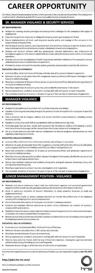 Karachi Based Company Jobs 2023 announce the Contract career opportunities for the post of See Below Ad in Sindh, Karachi for the fresh and experienced candidates on Contract basis who have Check Advertisement degree. Posted date of this post is 09/04/2023 and the last date is 23/04/2023. if you are eligible for this job apply before due date.