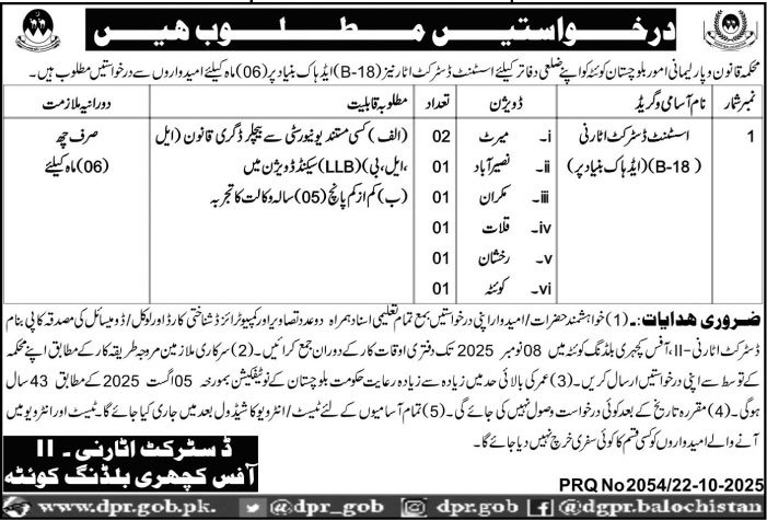 Law & Parliamentary Affairs Department Quetta Job 2025 announce the Contract career opportunities for the post of See Below Ad in Balochistan, Quetta for the fresh and experienced candidates on Contract basis who have Check Advertisement degree. Posted date of this post is 23/10/2025 and the last date is 05/11/2025. if you are eligible for this job apply before due date.
