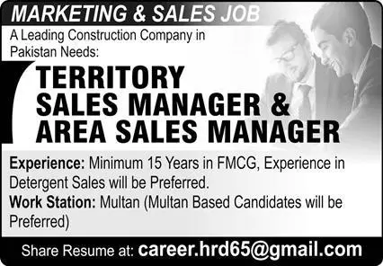 Leading Construction Company Multan Jobs 2023 announce the Contract career opportunities for the post of See Below Ad in Punjab, Multan for the fresh and experienced candidates on Contract basis who have Check Advertisement degree. Posted date of this post is 11/08/2023 and the last date is 25/08/2023. if you are eligible for this job apply before due date.